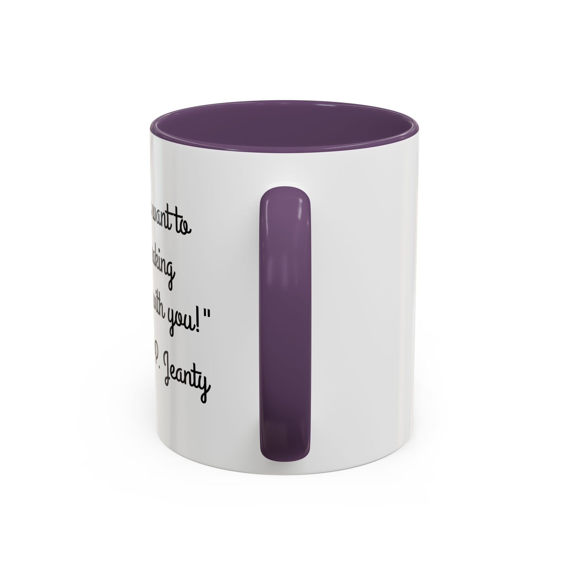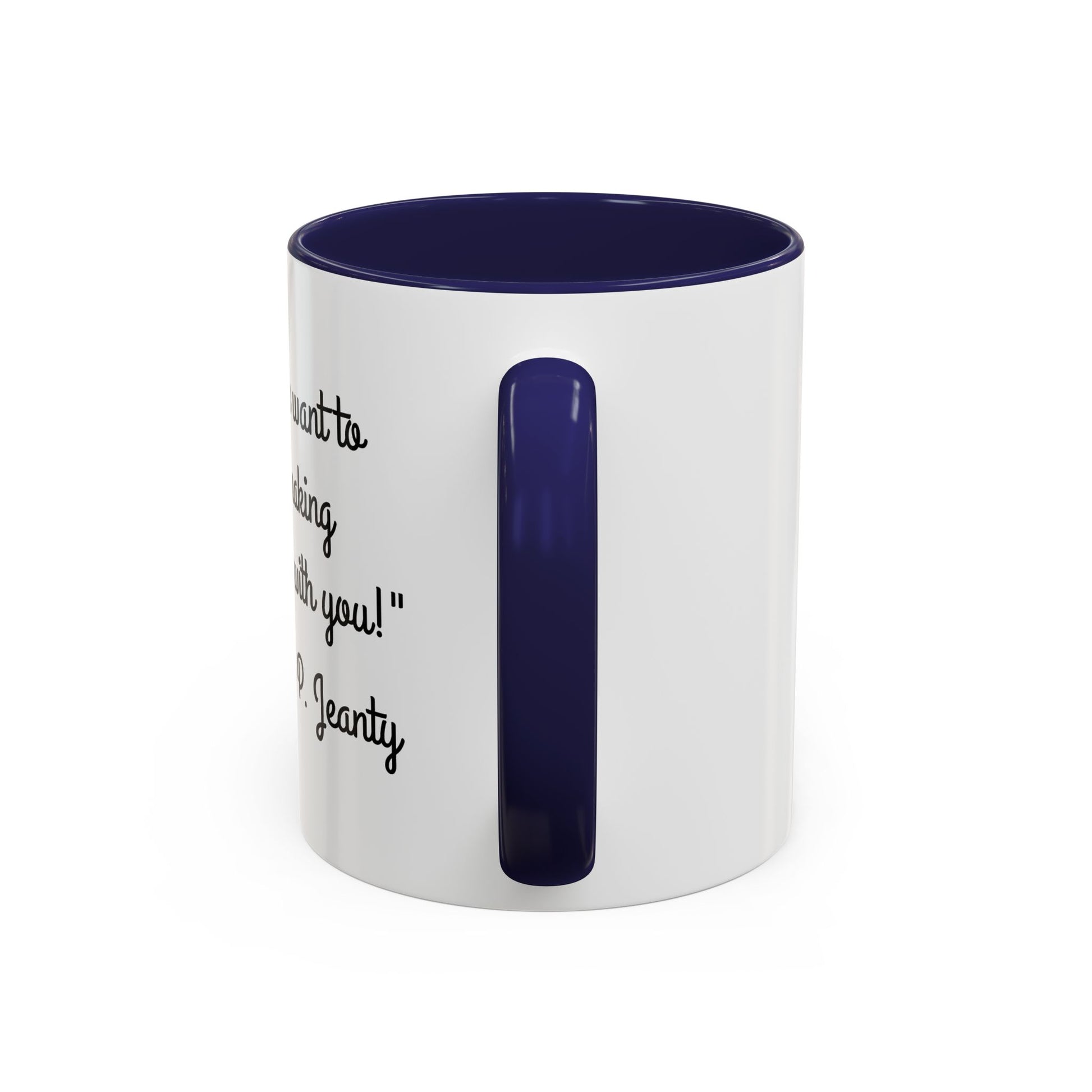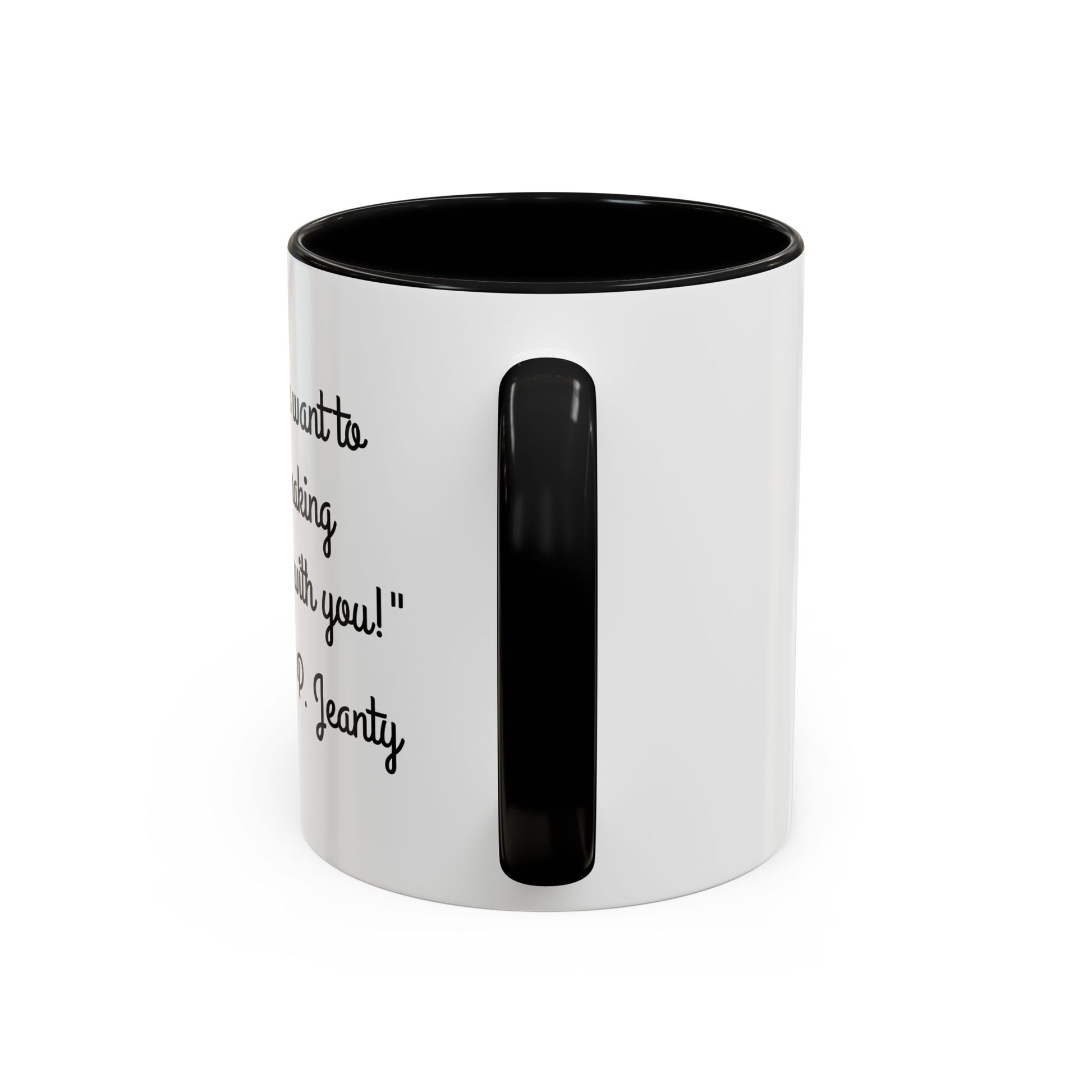 Bright, two-toned ceramic mug that turns everyday coffee into a quiet moment of connection. The glossy white exterior pairs with a bold colored interior and handle, framing a handwritten-style quote that reads like a note from someone who loves being present. Warmth gathers in the palm as the black rim and handle create a gentle contrast against the clean white canvas. It’s the kind of mug that sits on the table during slow mornings, on the desk during late-night planning, or by the sink after an honest conversation spilled over. You’ll reach for it when you want comfort and a small reminder that memories are being made.