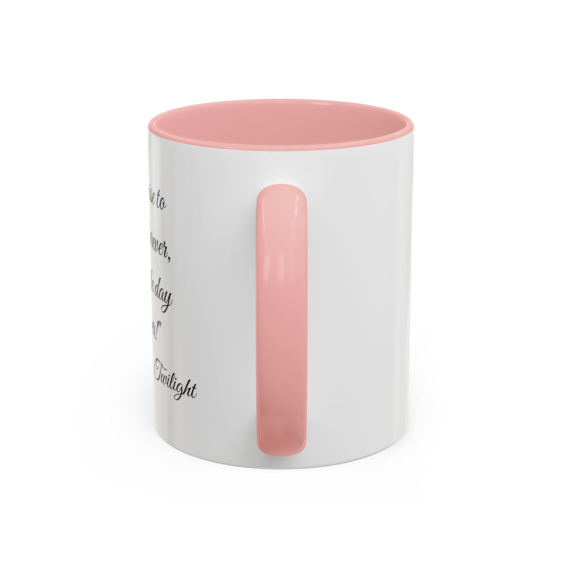 A warm, glossy ceramic mug that speaks softly to twilight-lit moments and quiet devotion. Smooth white porcelain frames an elegant script quote, while the contrasting colored interior and C-shaped handle add a subtle, romantic pop. It feels like a calm morning ritual—steam rising, fingers cradling the warm curve—where a simple line of text turns coffee breaks into gentle reminders of connection. Lightweight enough for daily use, with vibrant print that stays crisp after washes, this mug settles into bookshelf nooks, bedside tables, and shared kitchen counters with quiet confidence.
