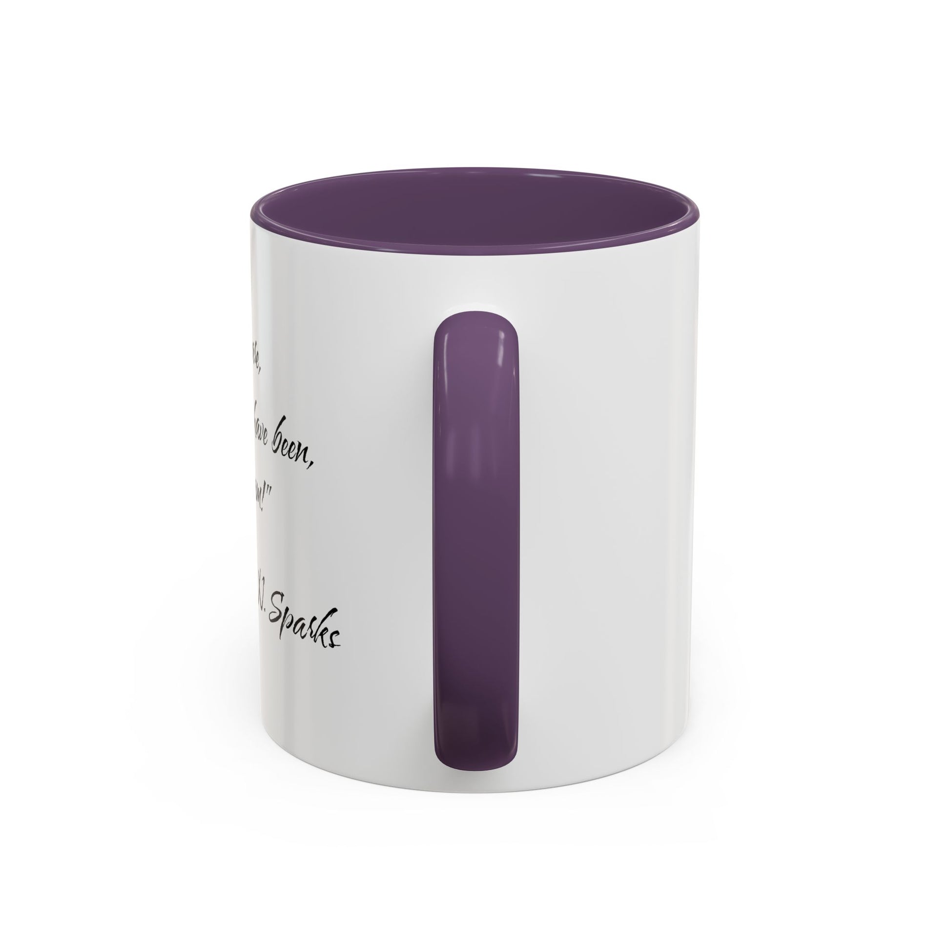 This ceramic accent mug brings a quiet, heartfelt moment to every morning. The clean white exterior with a contrasting colored interior and handle frames an elegant handwritten quote — a small, personal reminder as you sip your coffee or tea. Its glossy finish and crisp print give the words clarity and presence without shouting. Easy to use and care for, it becomes part of the daily ritual: a pause, a smile, a single line that sticks with you through the day.
